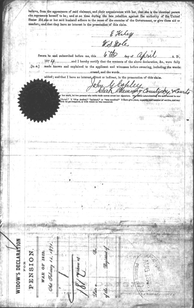 Marriage of Soldier & Widow: Feb. 3, 1813 Schuyler Co. NY
