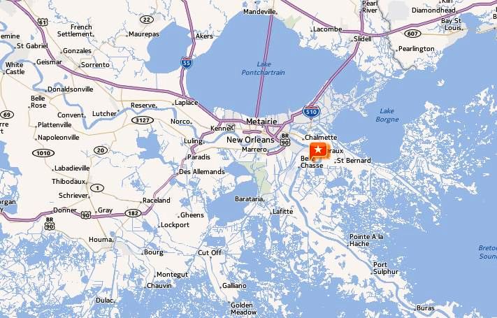 The photo of the map shows where the levee breached if you look to the left you will see where I live at in Gray LA