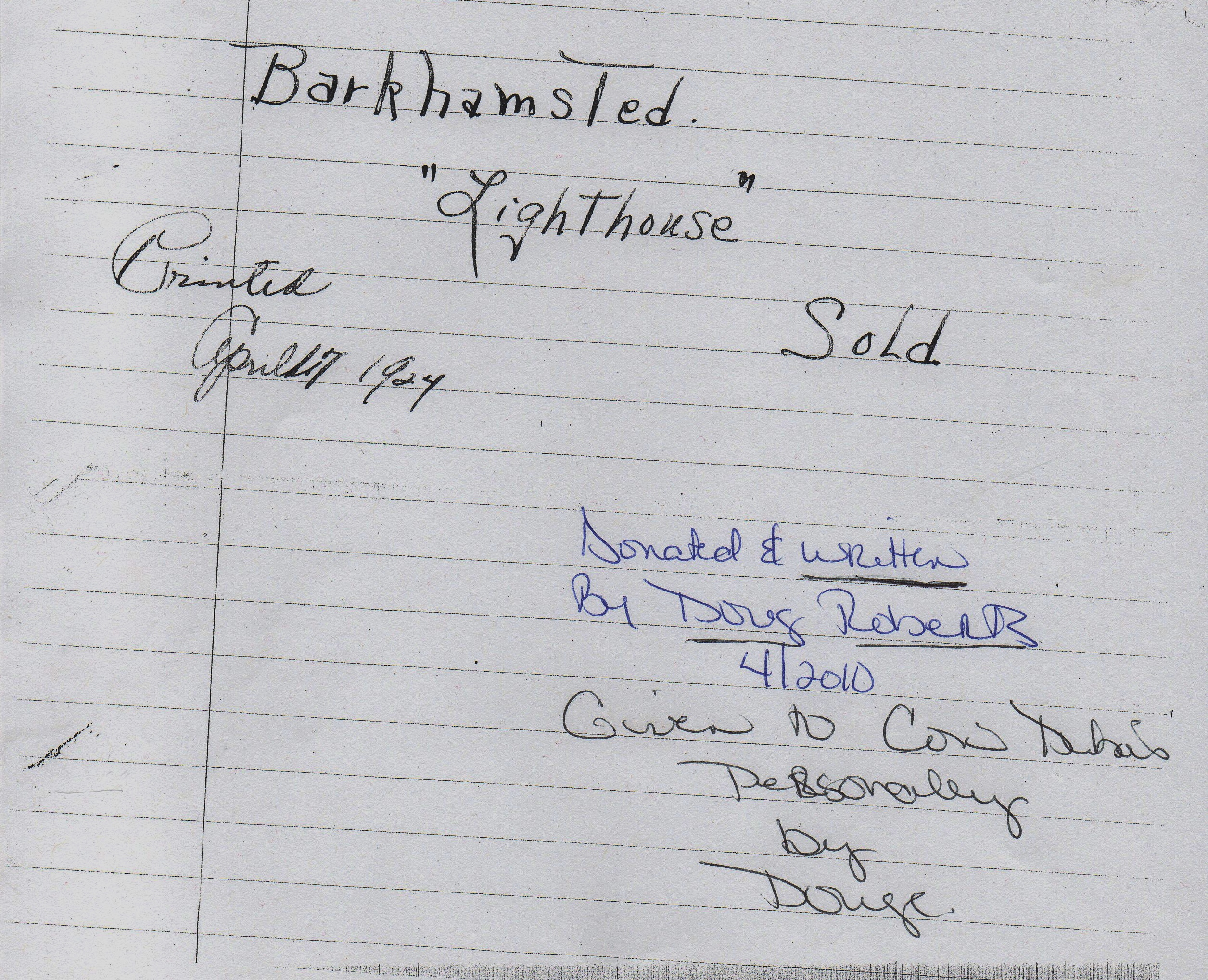 April 17, 1924 - Barkhamsted Lighthouse Sold CoverNeed this articleonly have this written copy from Doug Roberts
