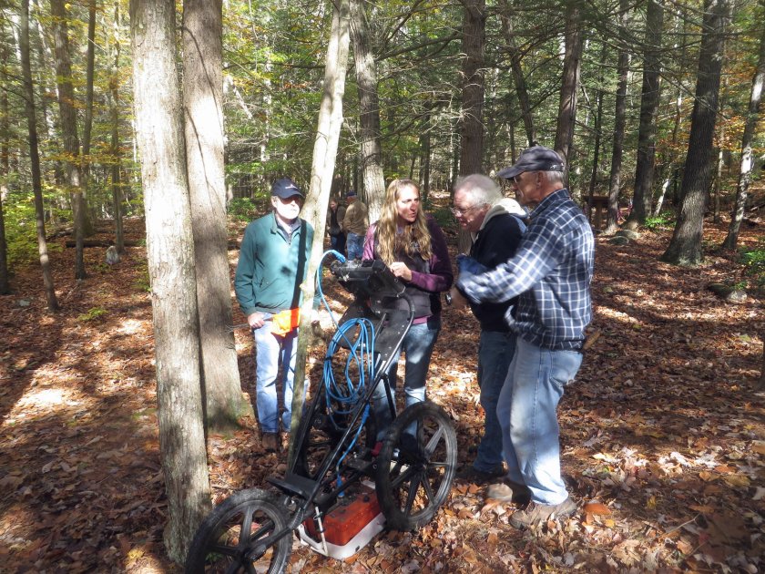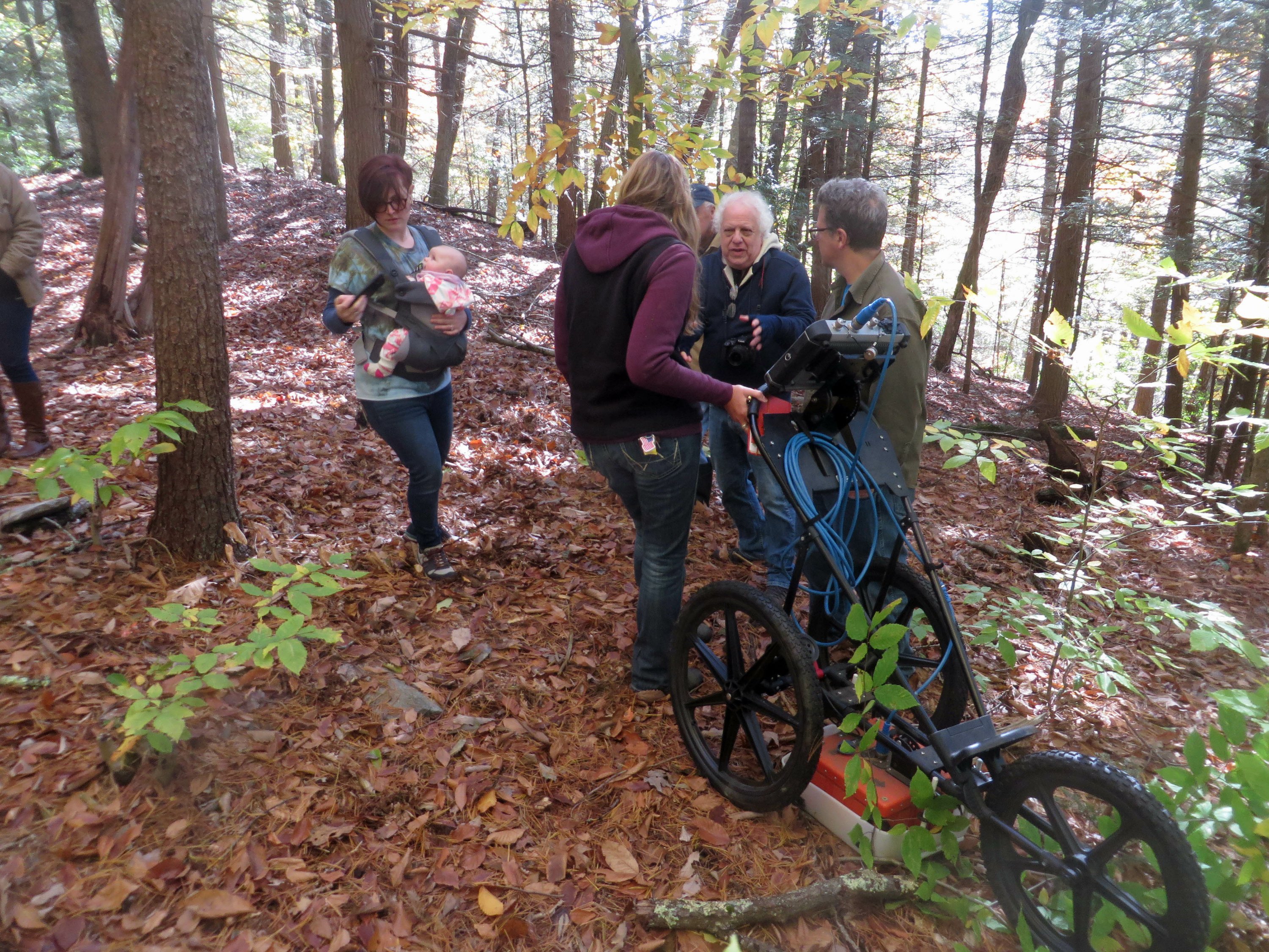 Photo 4 – Debbie Surabian operating the GPR instrument at the Barkhamsted Lighthouse cemetery site.