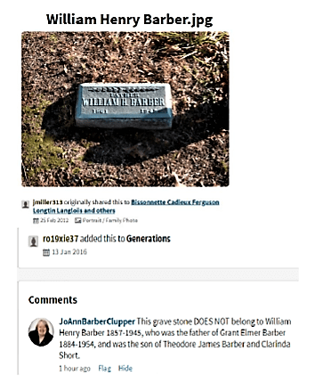 I have been informed of a comment via JoannBarberClupper on Find A Grave. She has stated in her comment that the tombstone posted on his Find A Grave (# 62768815) “is not his tombstone. I would like to clear up this issue of William Henry Barber tombstone!